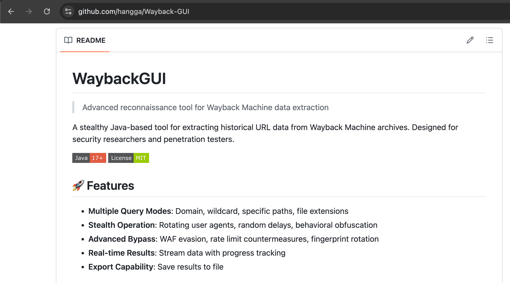 A stealthy Java-based tool for extracting historical URL data from Wayback Machine archives (Unofficial). Designed for security researchers and penetration testers.